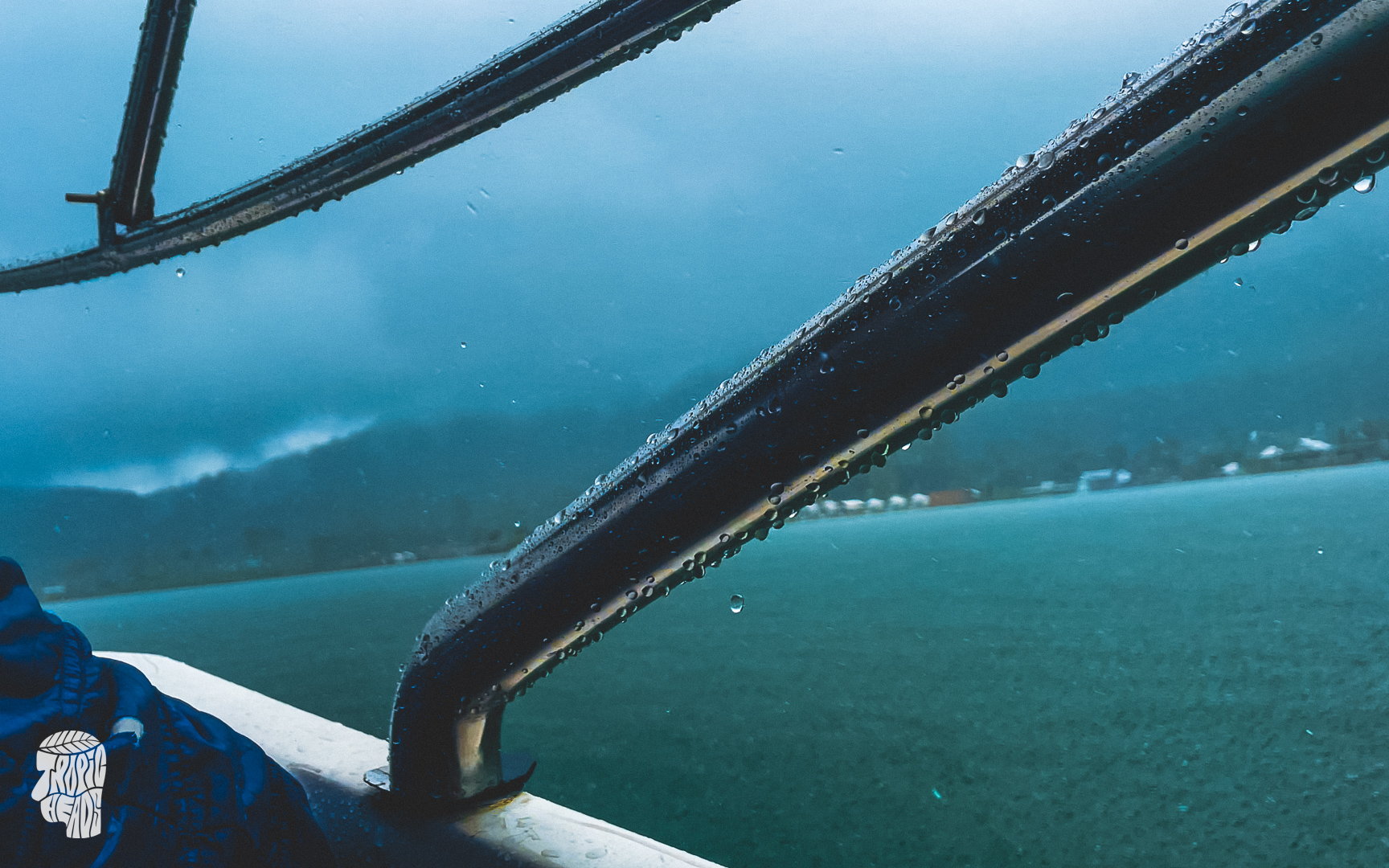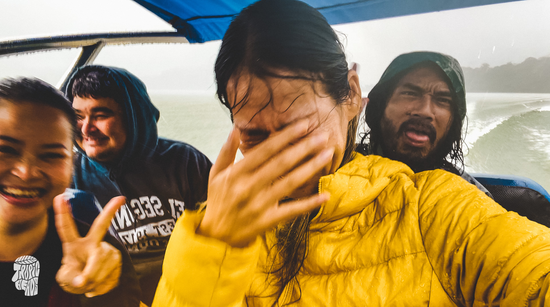 Akhirnya atap kanvas berhasil terpasang tapi ternyata tidak ada pengaruh karena hujannya disertai angin kencang dan juga perahunya bergerak maju. Air hujan pun masuk dari segala arah.