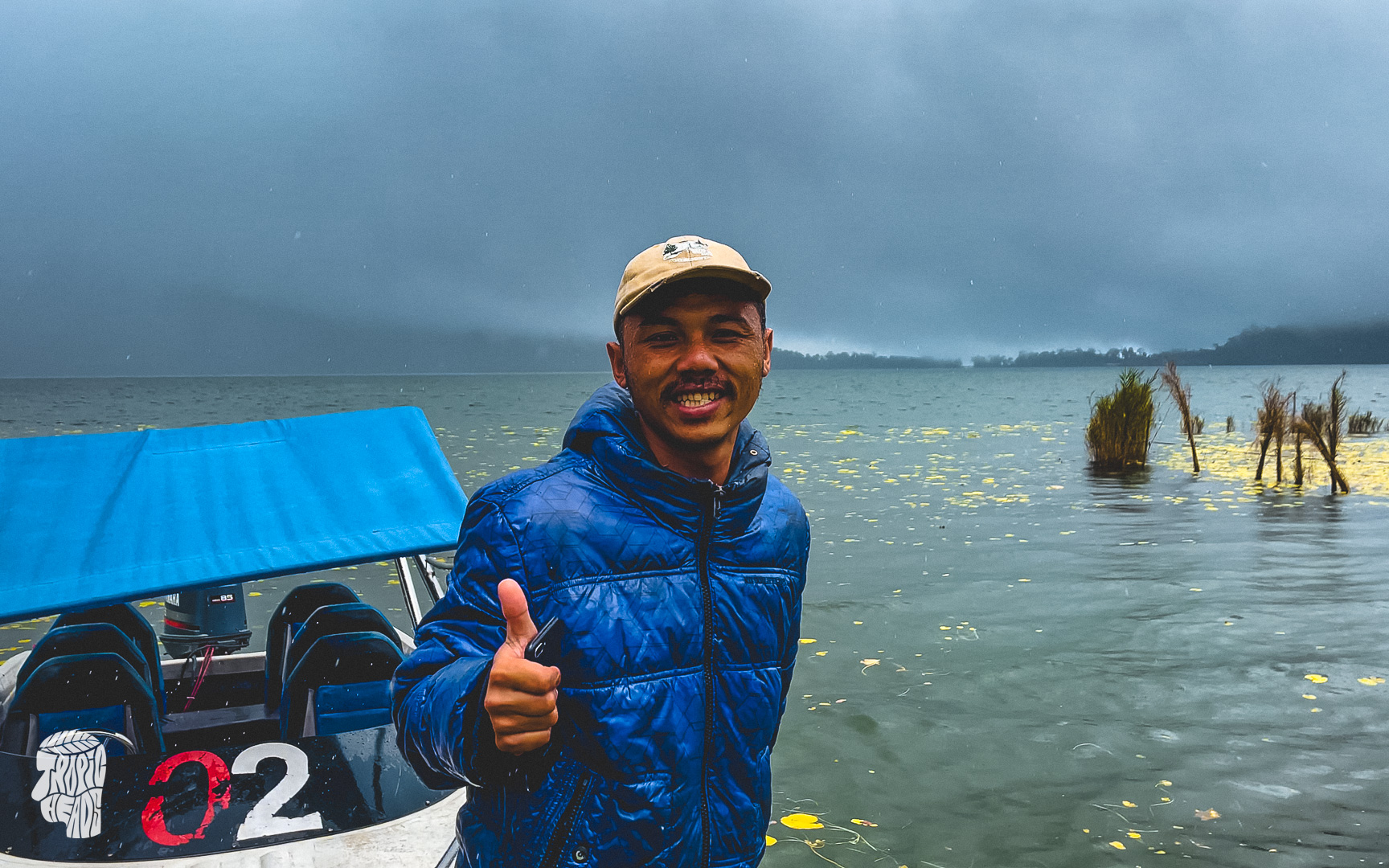 Lengkap dengan jaket kami berangkat berempat bersama kawan kami owner hotelnya, karena mereka juga belum pernah naik perahu keliling danau Beratan.