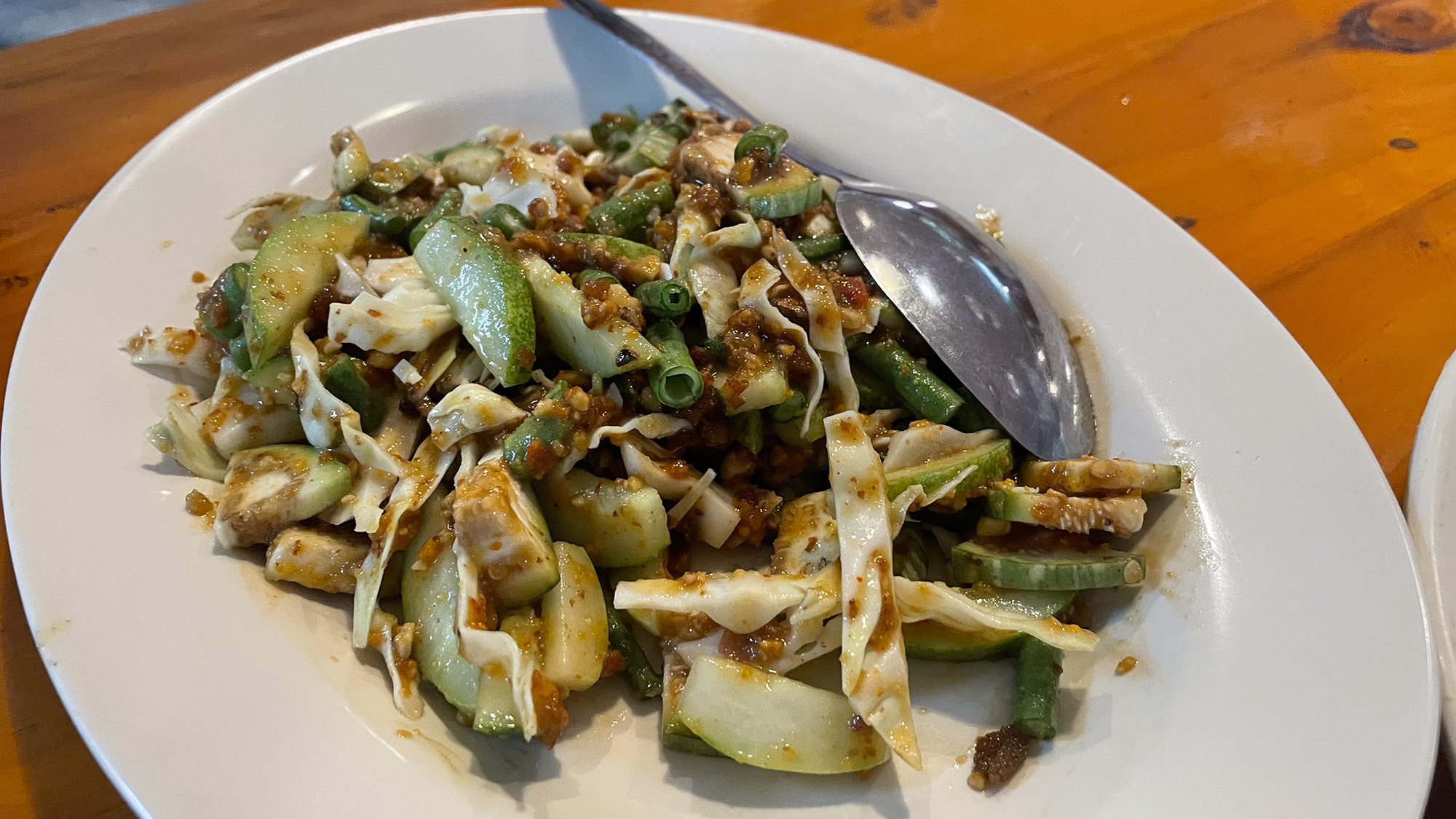 そうそう、ホットティーが無料で飲めるだけでなく、生野菜(キュウリ、ナス、キャベツなど)も取り放題。サンバルも3種類用意されていてこのお店の太っ腹サービスは嬉しいかも。