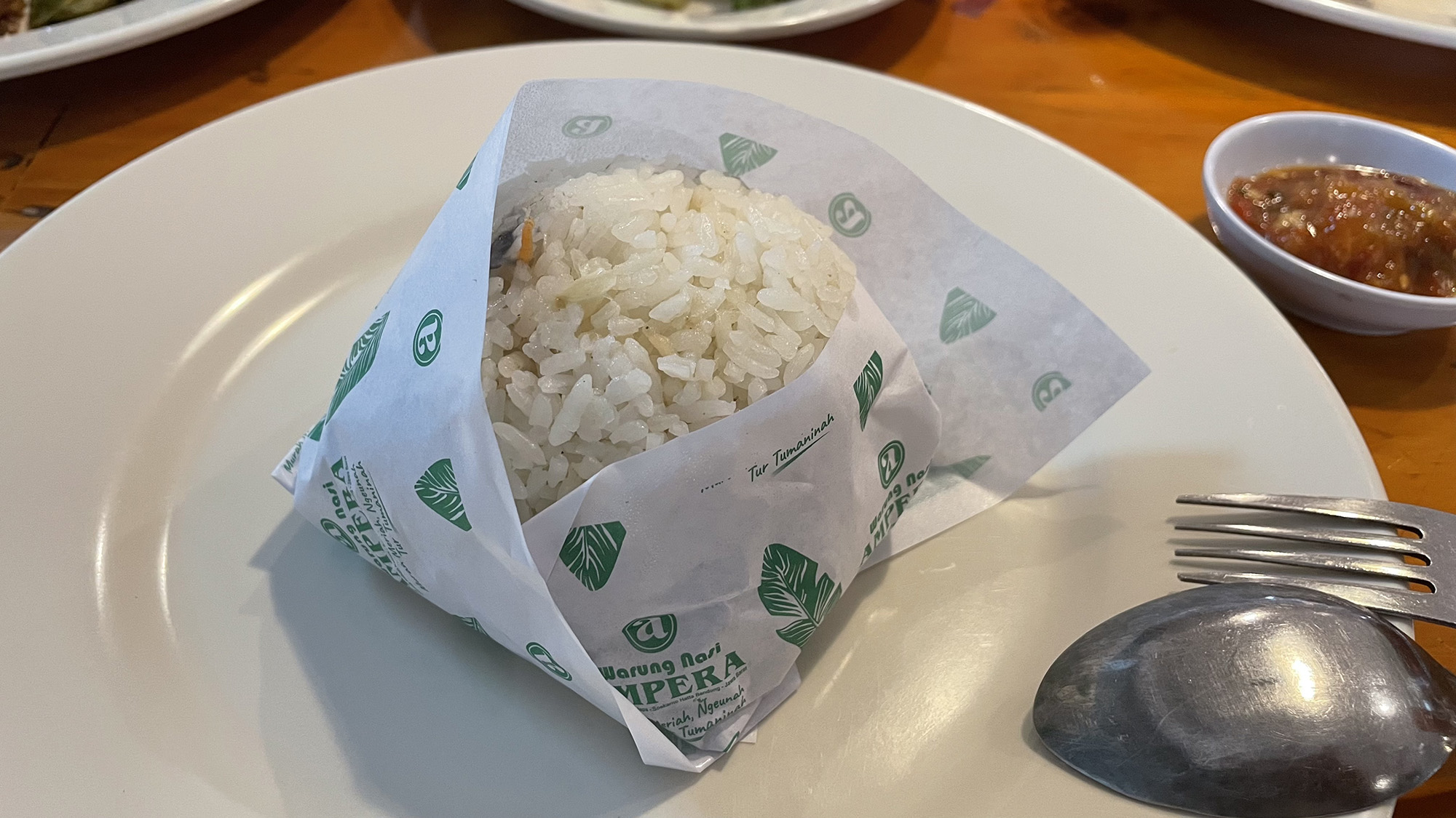 白ごはん、赤米、ナシリォッ(ココナッツとスパイスで炊いたご飯)から選べます。